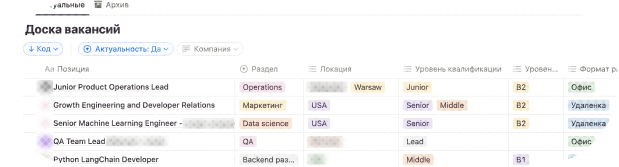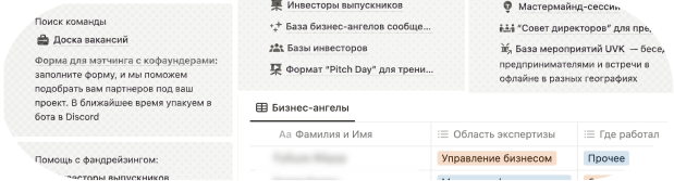 У нас есть библиотека профилей участников с тегами по профессии, интересам, месту проживания и работы, а также доска вакансий.